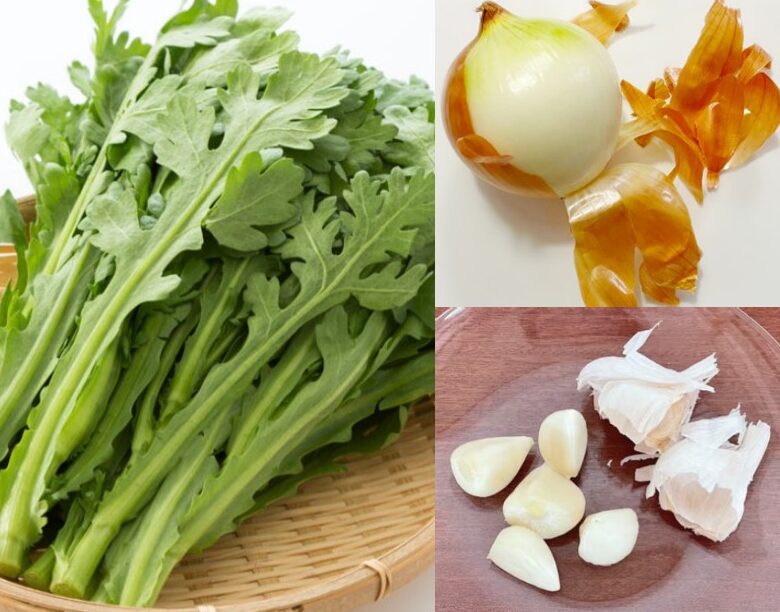 春菊ジュースの作り方~春菊2束を刻み➜ミキサーに水200~300ccとで液状にします➜製氷皿に注ぎます➜冷凍保存します<いつでも飲めます>