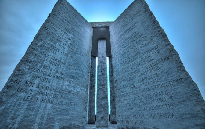 1980年に建立した<ジョージア・ガイドストーン>高さ5.87メートル・重量10万7840キロの花崗石~ここに世界人口を5億人以下に削減すると刻まれています~《建造者は不明》2022年7月に誰かが破壊しました。