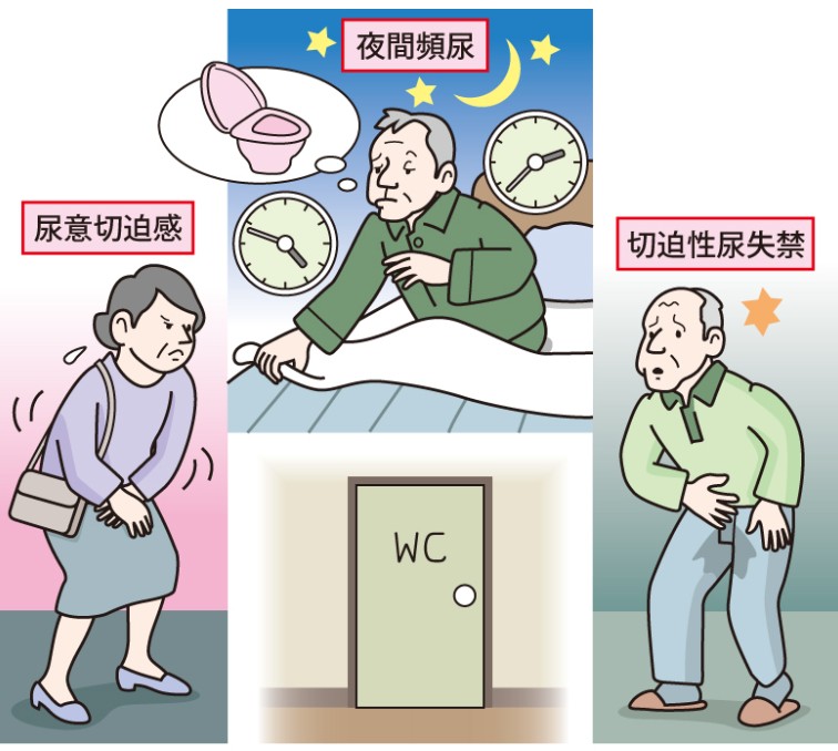 年齢とともにぼうこうの収縮力とかが低下します~尿が出づらくなり~残尿感や尿漏れがあったりで~トイレ回数が8回以上を頻尿といわれています~完治する特効薬はないようです~