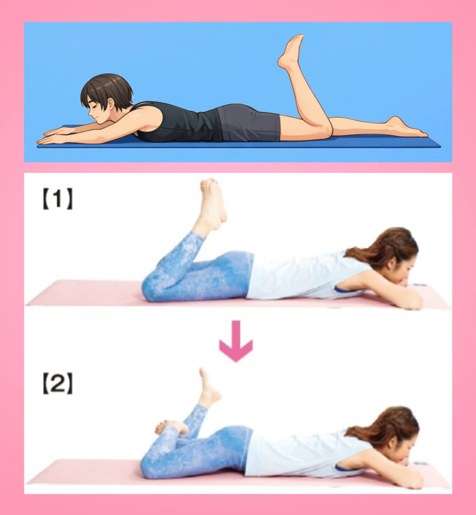 上図は~ひざを上下&交互にやや強く折り曲げ運動をします➡かかとがお尻に当たればOK➡1と2は足首を左右に動かし~下半身を和らげます。