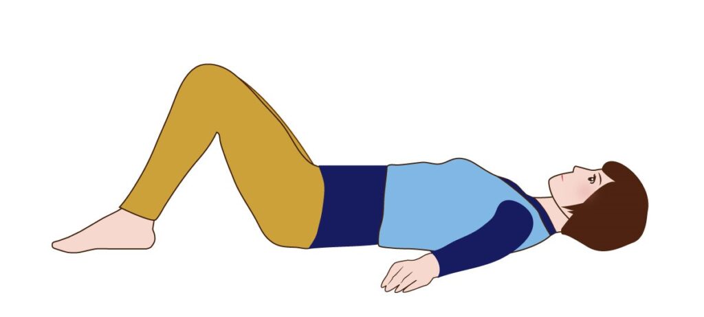 両足を45度ほどに広げて立てる➜左は立てたまま➡右ひざを内側の下まで折り曲げる➜元に戻す➜左右を交互に15回ほど繰り返します。